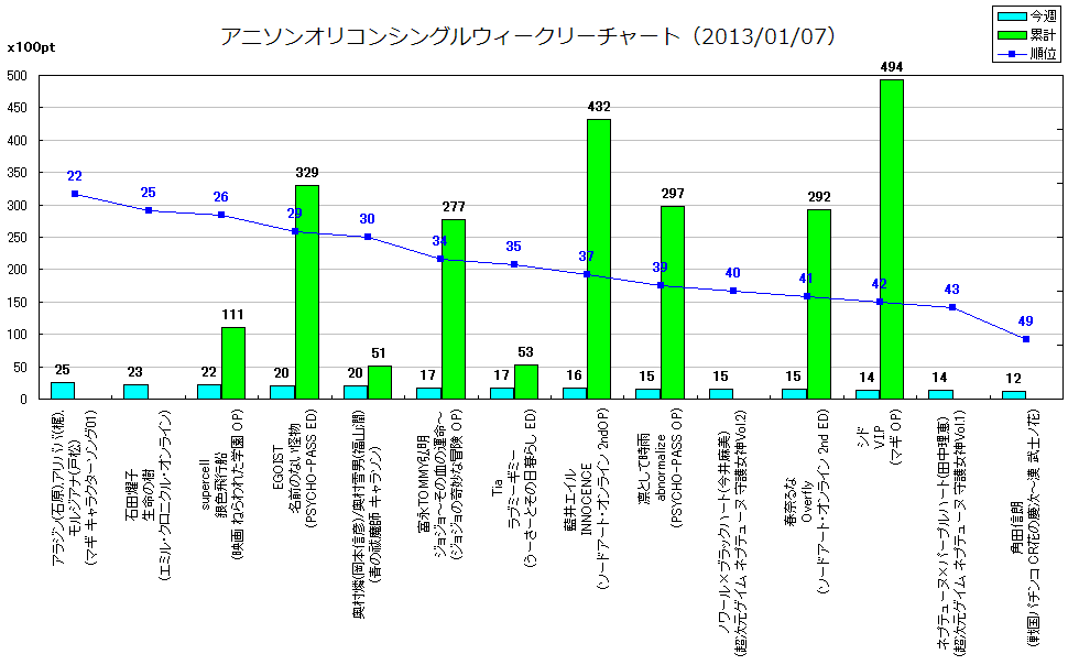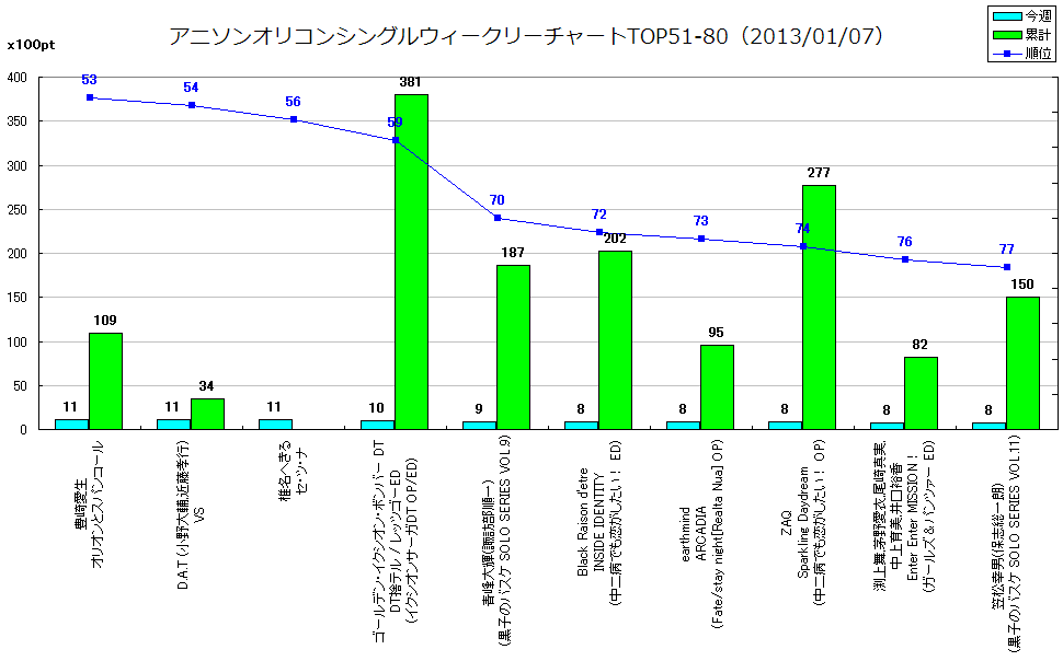 この冬、豊崎愛生成分が足りない・・・グラフで見るオリコンウィークリー[2013/01/07付]