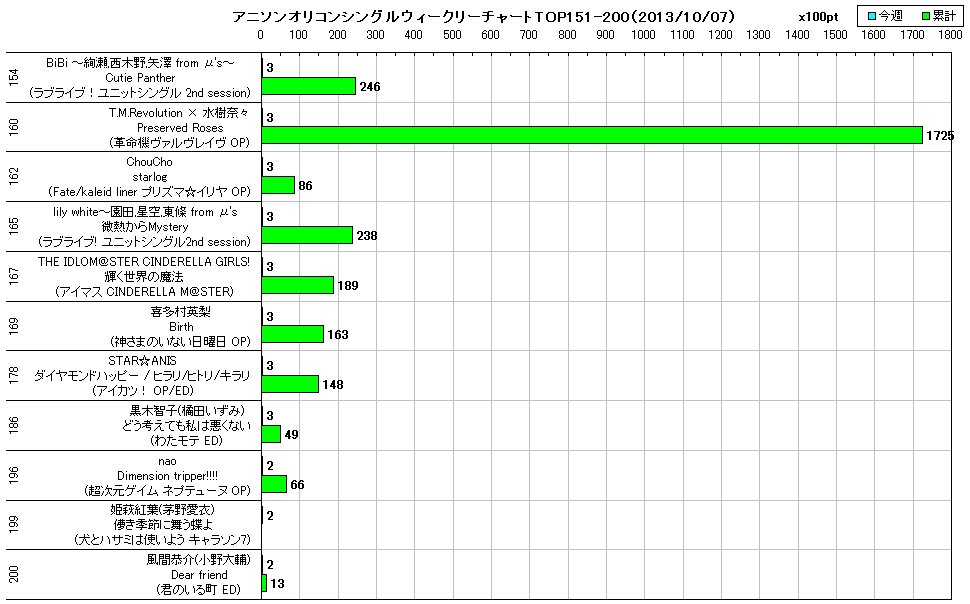 アニソンオリコンウィークリーグラフTOP151-200(2013/10/07付)