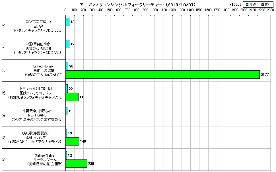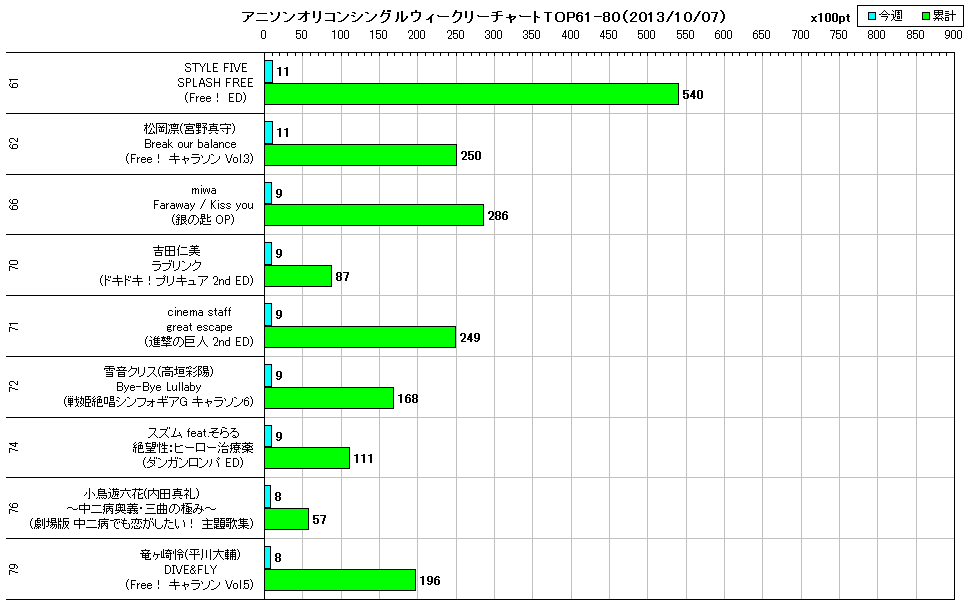 アニソンオリコンウィークリーグラフTOP61-80(2013/10/07付)