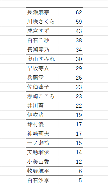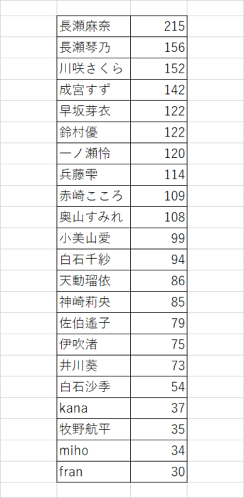 実は、この絵を頑張った理由があるんですよ。当時、ゲームリリースから3ヶ月、pixivにはどのキャラのファンアートの投稿数も順調に伸びていたのですが・・・当時僕が集計した各キャラのファンアート数がこちら。