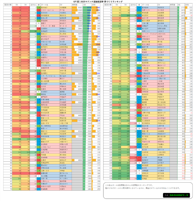 GF(仮)2025マドンナ選抜総選挙 罪づくりランキング
